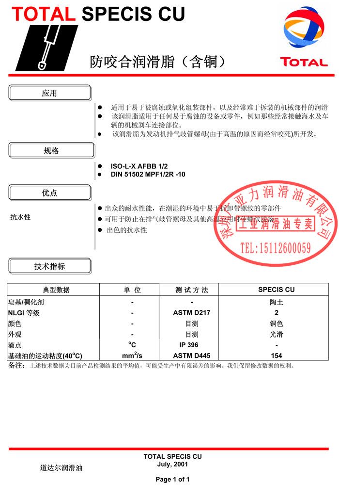 道达尔SPECIS CU —防卡咬装配膏 详细说明 浏览3046次